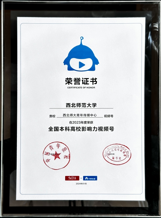 西北师大团委视频号入选 2023 年度全国高校视频号影响力百强榜