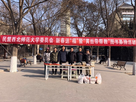 活动中,广大盟员和师生共捐献各类图书260余册。盟员吴怀信和常刚宏教授现场挥毫泼墨为师生撰写春联,以新春送“福”的形式为广大师生送上祝福。