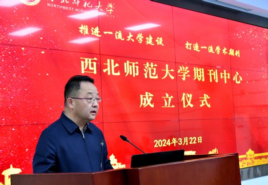 邵志刚在致辞中表示,西北师大期刊中心的成立,对于全省学术期刊建设、科学研究和文化发展工作具有重要意义,将为凝聚合力、打造优秀学术期刊矩阵奠定坚实基础。希望学校提高站位,坚持正确的政治方向和价值取向,坚持以习近平新时代中国特色社会主义思想为指导,深入贯彻落实习近平文化思想,为构建中国特色、中国风格、中国气派的学科体系、学术体系和话语体系贡献力量。要立足国情省情,深刻回答好重大理论与现实问题,用高质量的选题和优秀的学术成果解答时代之问,多提睿智之言、多献管用之策。要强化标杆意识,以“走在前、勇争先、善作为”的标准和要求,引领激励学术工作者勇攀高峰、多出成果,出好成果。要完善制度建设,守好意识形态前沿阵地,切实履行好新时代新的文化使命,为全省学术期刊事业的蓬勃发展贡献力量。