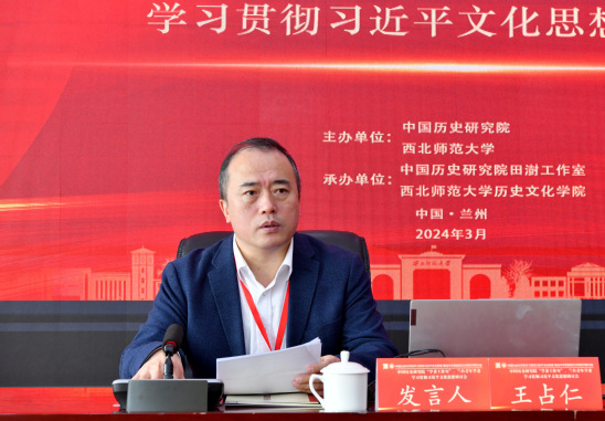 王占仁在主旨发言中表示,甘肃有着丰富的历史文化资源,只有始终坚持以习近平新时代中国特色社会主义思想为指导,深学细悟笃行习近平文化思想,立足国家所需、甘肃所能,才能深入挖掘其中蕴含的文化价值,为中国式现代化甘肃实践提供强有力的思想支撑、精神支撑和文化支撑。