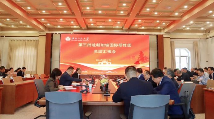 412上午召开第三批赴新加坡南洋理工大学研修人员总结汇报会。党委书记贾宁,党委常委、组织部部长周琳辉出席会议三批研修的104位教学科研管理骨干会议由党委常委、宣传部长、副校长王文昇主持。