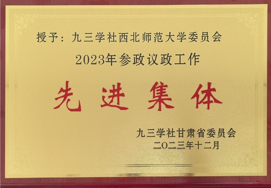 近日,九三学社甘肃省第九届委员会第二次全体(扩大)会议在兰州召开。九三学社省委会授予西北师大委员会“全省2023年参政议政先进集体”称号,九三学社西北师大委员会副主委、地理与环境科学学院教授潘竟虎荣获“先进个人”,九三学社西北师大委员会主委、生命科学学院教授杨颖丽参加会议。