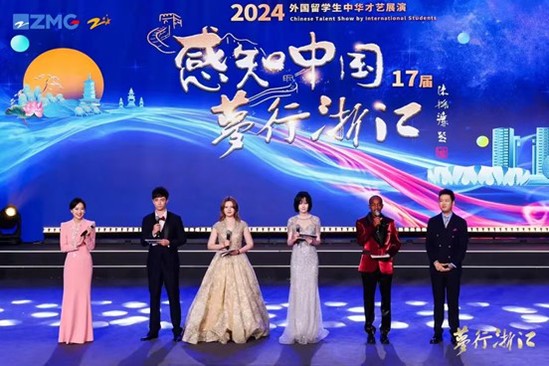 2024年4月19日晚,由国家留学基金委、浙江省教育厅、浙江省政府新闻办、浙江省政府外事办、浙江广播电视集团联合主办的第十七届“感知中国梦行浙江”系列活动外国留学生中华才艺展演在杭州举行,我校、南京艺术学院及浙江省14所高校的近400名外国留学生欢聚一堂,带来一场跨越国界、多元融合、精彩纷呈的才艺汇演。
