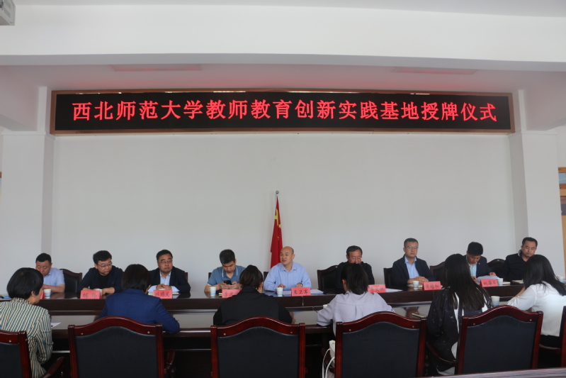 仪式上,西北师大与定西市第一中学等八所省级示范性高中签订合作备忘录,相关负责人共同为“教师教育创新实践基地”挂牌。