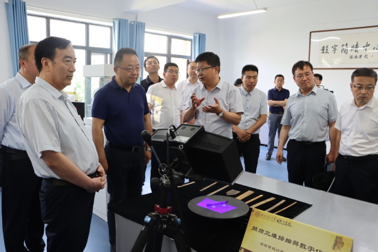 贾宁强调,教育学科建设成果展览室要进一步融合新技术,采用新手段,让信息展示“动起来”,资源利用“活起来”;简牍认知馆按照原有规划建设的同时,要充分征求学院师生意见,发挥群众智慧,打造成国内简牍研究的“新高地”;简牍智能计算与数字人文实验室要加快简牍数字资源的挖掘和开发,尽快推动简牍学术资源数据库建设和专题网站上线工作。相关职能部门要进一步提升工作效能,总结先进经验,尽快出台学校展室、展馆建设指导性方案,确保学校各类资源能够可持续利用,推动学校各项事业高质量发展。