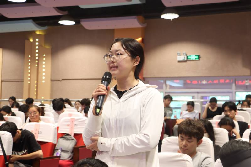 在互动交流环节,师生们纷纷踊跃提问。“在理想和现实之间,您是如何兼顾、如何平衡的?”“在特别枯燥艰苦的时候,您是如何坚持下来的?”“对于我们的就业选择,您有什么建议?”……两位宣讲人一一解答,通过亲身经历和奋斗感悟勉励在场的青年师生。