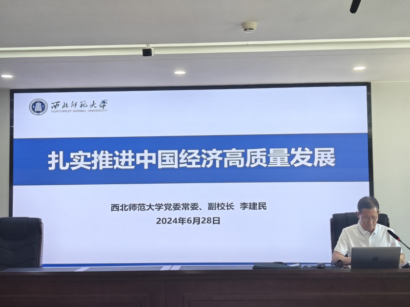 6月28日下午,西北师大副校长李建民为管理学院、经济学院师生党员讲授题为《扎实推进中国经济高质量发展》的专题思政课。管理学院、经济学院师生党员代表100余人参加。