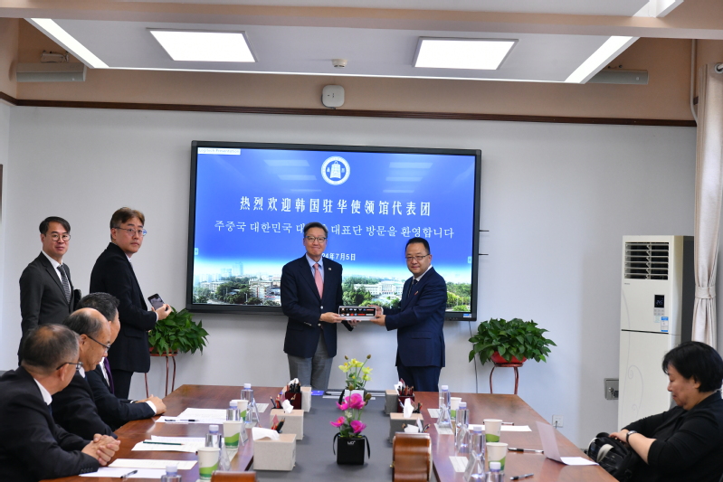 7月5日,韩国驻华大使郑在浩、韩国驻西安总领事洪淳昌一行来西北师大访问。党委书记贾宁、副校长王文昇出席座谈会;省政府外事办、学校国际合作交流处、外国语学院相关负责人参加。