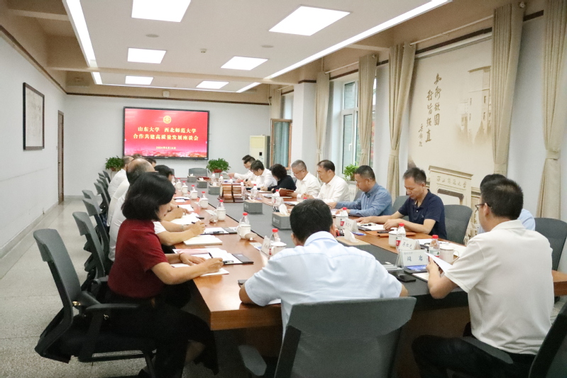 8月14日上午,山东大学党委书记任友群,党委常委、组织部部长曲明军一行来校就两校合作共建高质量发展进行调研交流。甘肃省教育厅高等教育处处长张洪伟,西北师大全体校领导及山东大学和西北师大相关部门负责人参加。