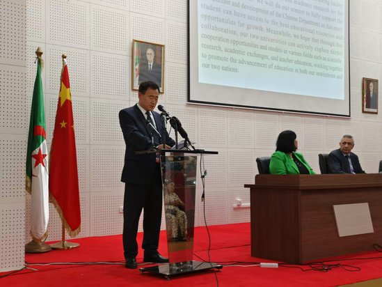 赵平盛表示,阿尔及尔第二大学中文系是阿高校成立的首个中文系,具有历史意义。语言是历史文化传承的载体,是人民友好交往的桥梁,是文明互学互鉴的纽带,希望中文系的同学们认真学习,立志做中阿友好合作的实践者、促进者、贡献者。