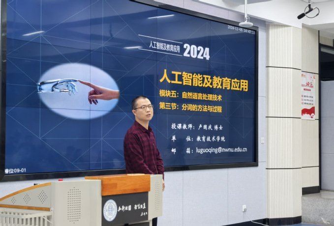活动现场,教育技术学院卢国庆博士作了题为《人工智能及教育应用》的报告,重点从说课、授课两个环节多场景、多维度让参会人员体验、分析智能技术在教学领域中的应用。