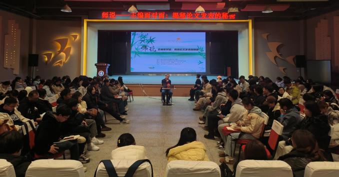 在活动中,学校期刊中心主任王兆璟教授开讲“师说主编面对面”科研沙龙,从论文写作的“外”与“内”全面分析了论文的构成要素、选题来源、写作规范及发表策略,阐释了论文写作是实现个体生命的完善与提升的过程,寄语广大同学要恪守学术规范与伦理,保持对学术的敬畏之心。