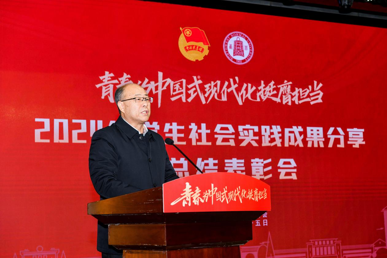 王文昇对受表彰的单位和个人表示热烈祝贺,并从厚植家国情怀,提升实践育人思政引领力;推动成果转化,提升社会实践服务贡献度;强化协同联动,提升实践育人品牌影响力三个方面,对发挥好社会实践在构建“大思政”育人格局中的重要作用提出具体要求。
