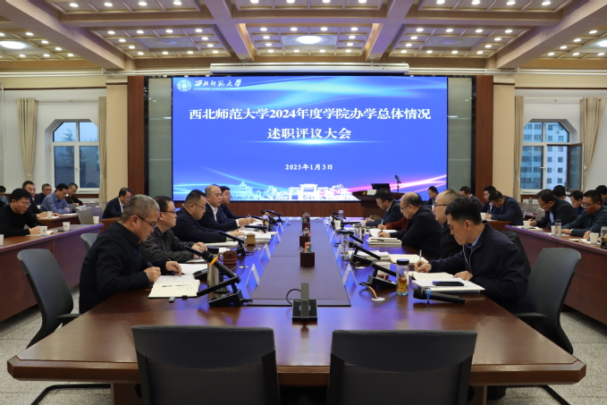 1月3日下午,西北师大召开2024年学院办学总体情况述职评议会。党委书记贾宁作分析点评。校长、党委副书记王占仁作总结讲话。校领导王全进、焦爱胜、张明军、王文昇、赵鑫、马世年、阎岩对所联系学院2024年工作进行逐一点评。党委常委、党委组织部部长周琳辉及各学院、各单位、机关各部门负责人参加。