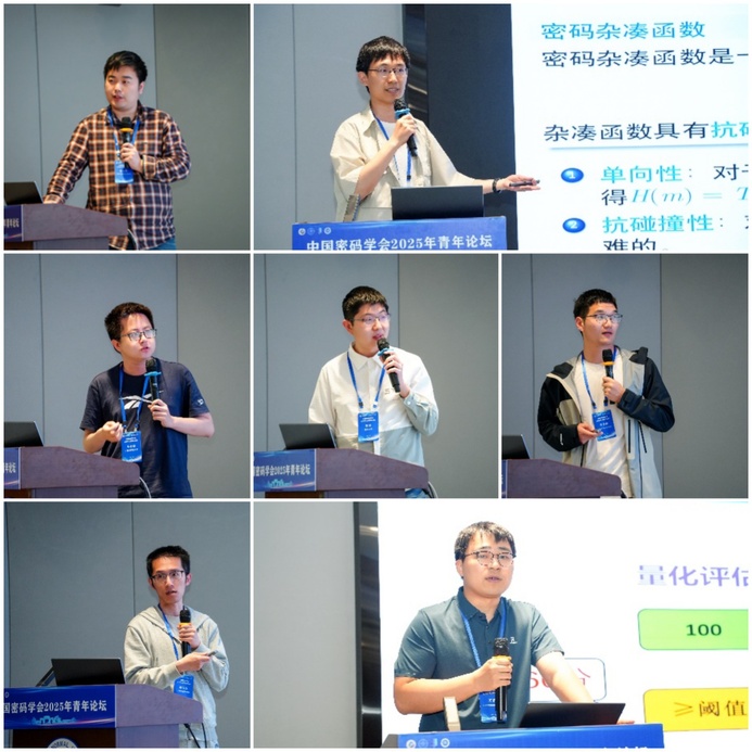 论坛现场,西安电子科技大学胡予濮教授、陈晓峰教授,华东师范大学周俊教授,厦门大学沈耀斌教授,密码科学技术全国重点实验室矫琳研究员,信息工程大学丁林教授,中国科学院大学张志宇特别研究助理,清华大学张聪博士后,中国科学院大学牛钟锋特别研究助理,Scroll Foundation张云聪博士,中国科学院信息工程研究所张心轩助理研究员,上海期智研究院郭晓杰博士后,天津云安科技发展有限公司方浩副总工程师等专家学者分别以函数加密、可验证计算技术、国际通信加密标准、序列密码、抗泄漏认证加密、隐私集合求并协议、零知识证明、半树密码技术、ARX型密码算法、隐私计算、密码安全性测评等领域的理论研究、技术应用及相关发展趋势为主题作了报告。