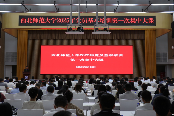 6月19日下午,西北师大举行2025年党员基本培训第一次集中大课,组织全体师生党员学习观看了中央党校(国家行政学院)党的建设教研部副主任祝灵君教授主讲的“学习贯彻习近平总书记关于加强党的作风建设的重要论述和中央八项规定精神”专题辅导视频课。省委组织部、省委宣传部、省委党校(甘肃行政学院)、省委教育工委相关处室负责同志到会指导。西北师大党委书记贾宁主持培训并做动员讲话。