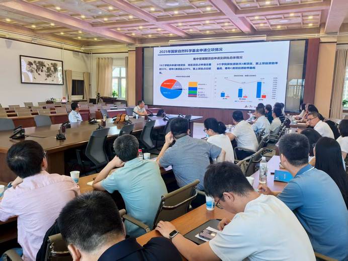 会上,科学研究院负责人通报了2025年上半年学校申请立项国家自然科学基金、国家社会科学基金、教育部人文社科项目以及创新平台建设、学术会议举办等情况,并对新学期科研工作进行了具体安排。会上启动了2026年国家自然科学基金、国家社会科学基金、教育部人文社科项目申报工作,数学与统计学院、物理与电子工程学院、马克思主义学院、历史文化学院分别作了科研项目申报培育工作经验分享交流。