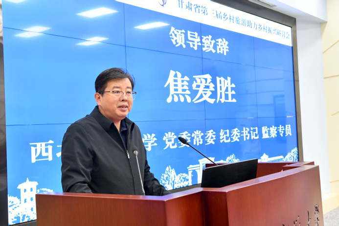 焦爱胜代表西北师大对与会嘉宾的到来表示欢迎与感谢,并简要回顾了学校123年扎根西北、服务国家的办学历程。他指出,本届研讨会主题紧扣时代趋势与甘肃实践需求,对推动乡村旅游高质量发展具有重要意义,希望与会专家学者以此次研讨会为契机,充分发挥智库作用,为甘肃乡村振兴和旅游发展贡献智慧力量。